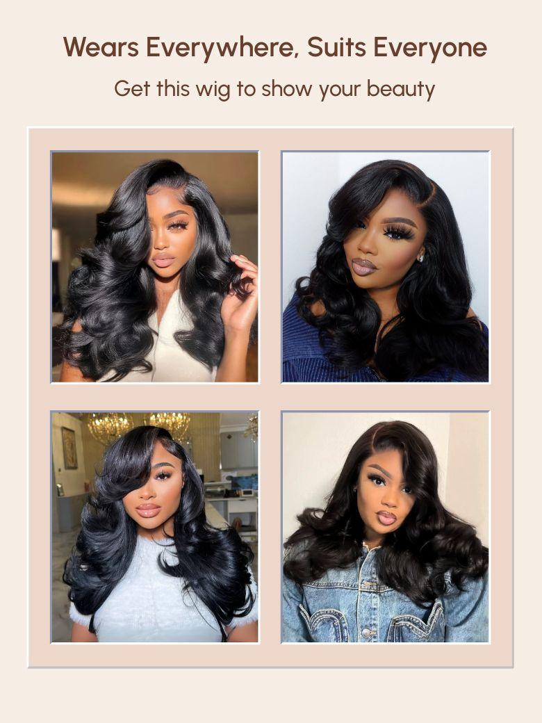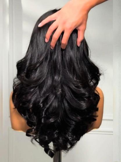 200% Density 7x5 Bye-Bye Slip™ Wig Feathered Layer Left Side Part Wig with Secure Silicone Strips and Drawstring
