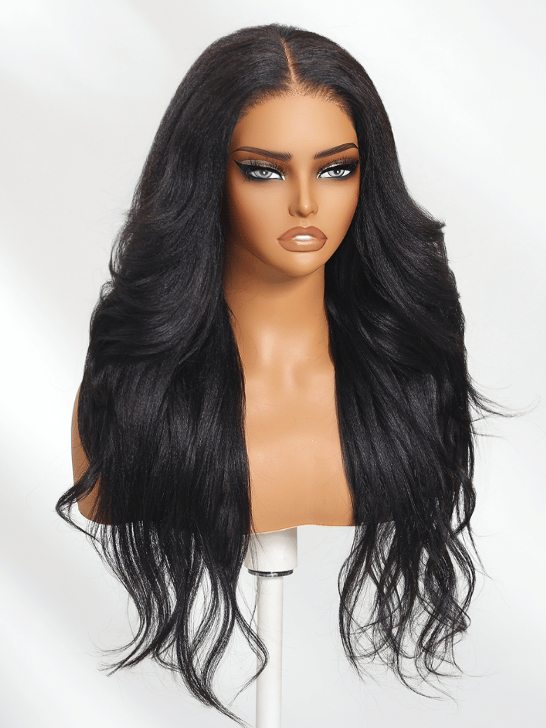 [Down to $89] Bye-Bye Knots 7x5 Natural Lace Black Yaki Wig with Soft Layers & Pre-Plucked Hairline 150% Density