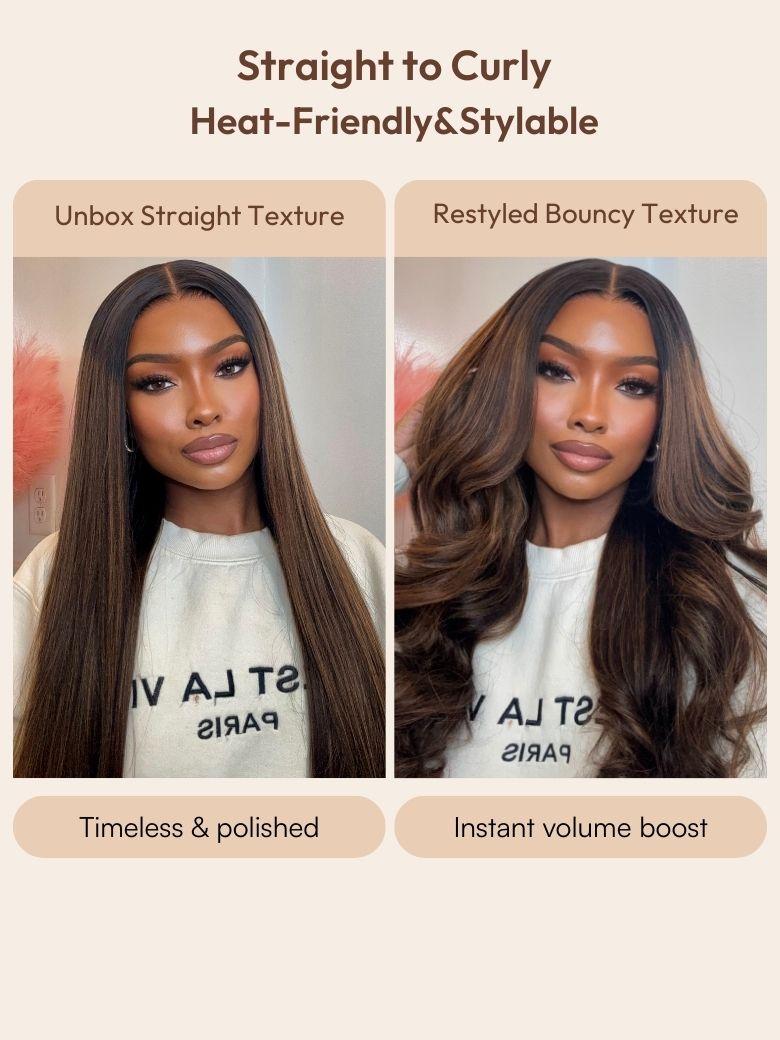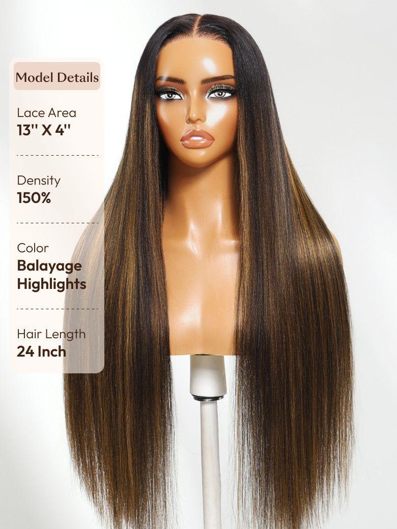 UNice Balayage Highlights 100% Human Hair 13x4 Pre-Everything™ Lace Frontal Yaki Straight Drawstring Wig