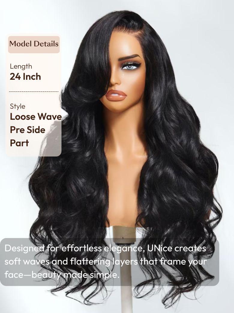 UNice 13x4 Pre-Everything™ Wig With Loose Wave Face-Framing Layers And Side-Swept Bangs With Drawstring