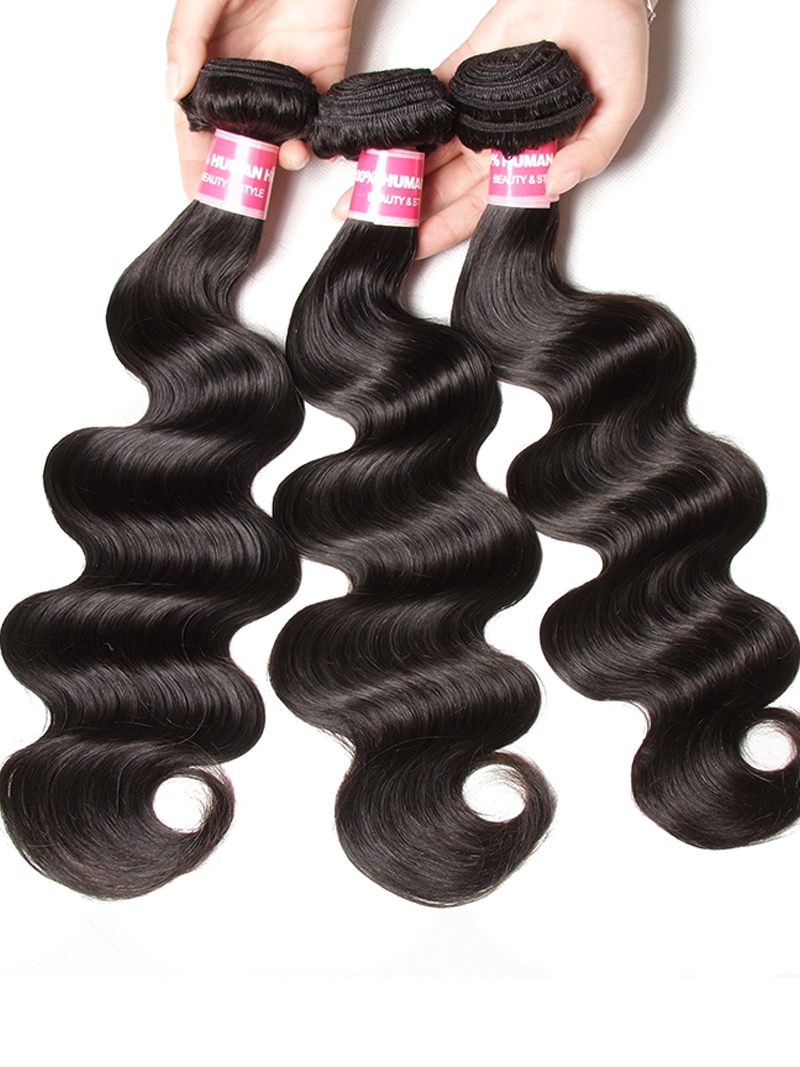 UNice Hair 3 Bundles Brazilian Body Wave With T Part Lace Closure