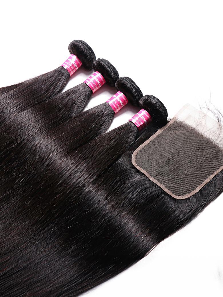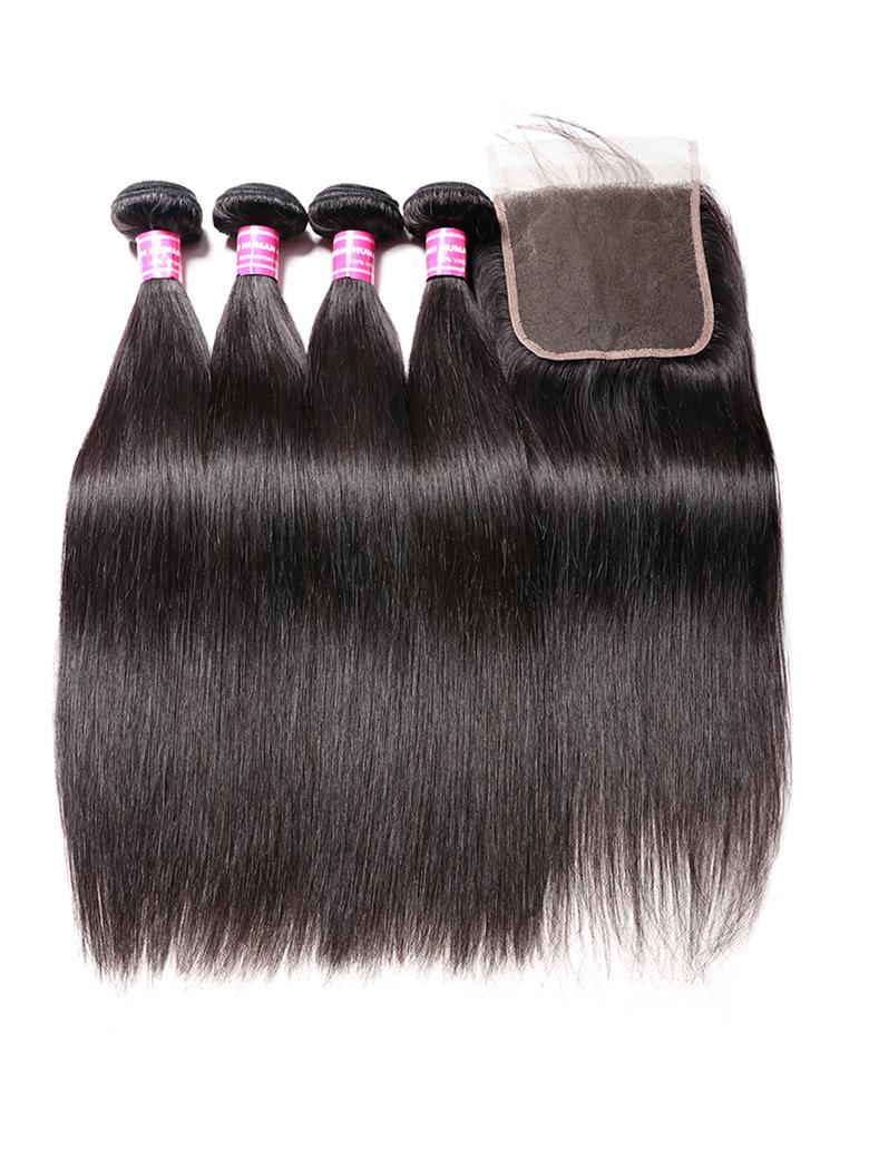UNice Hair Icenu Series 4pcs Brazilian Straight Virgin Hair With Lace Closure