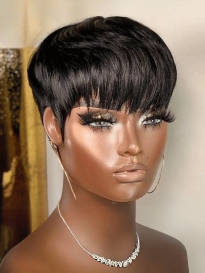 100% Human Hair Glueless Wig Short Pixie Cut Human Hair With Side Bangs