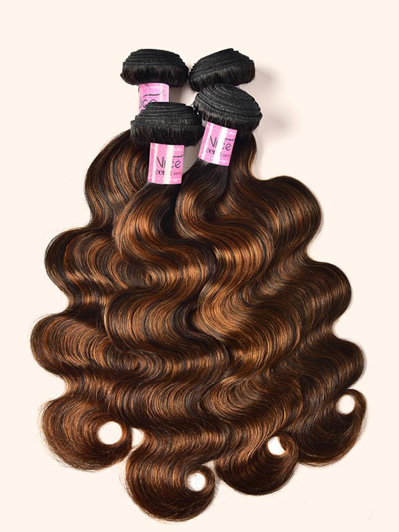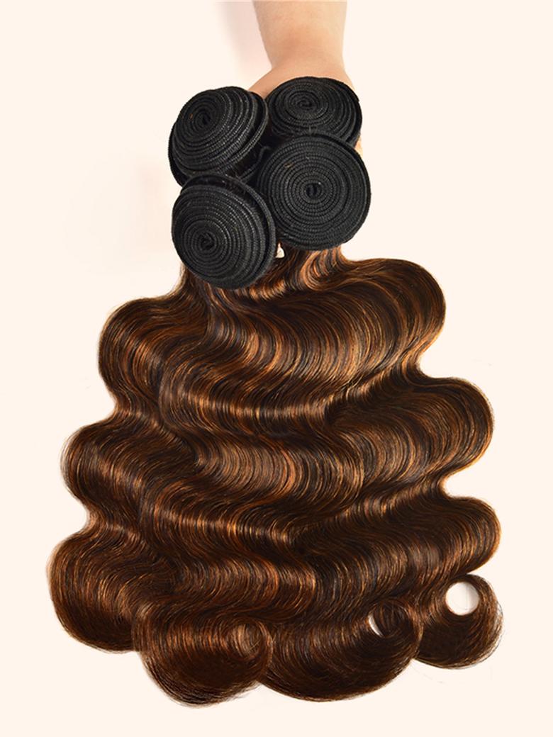 UNice 1B/30 Brown Ombre 4Pcs Hair Bundles With Lace Closure