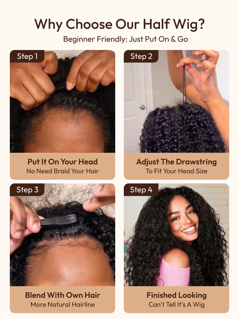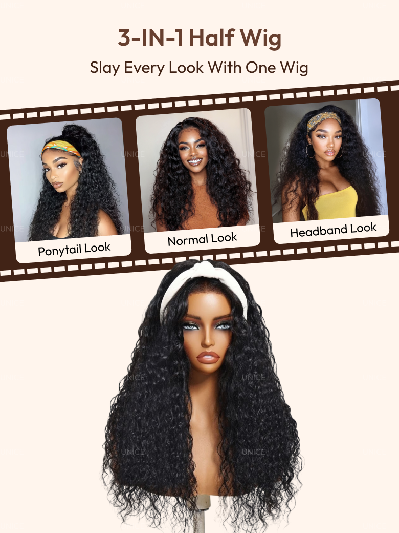 [Invisi Blend] UNice Blend & Secure 10 seconds flip-over Half Wig Water Wave With Drawstring Glueless Wig