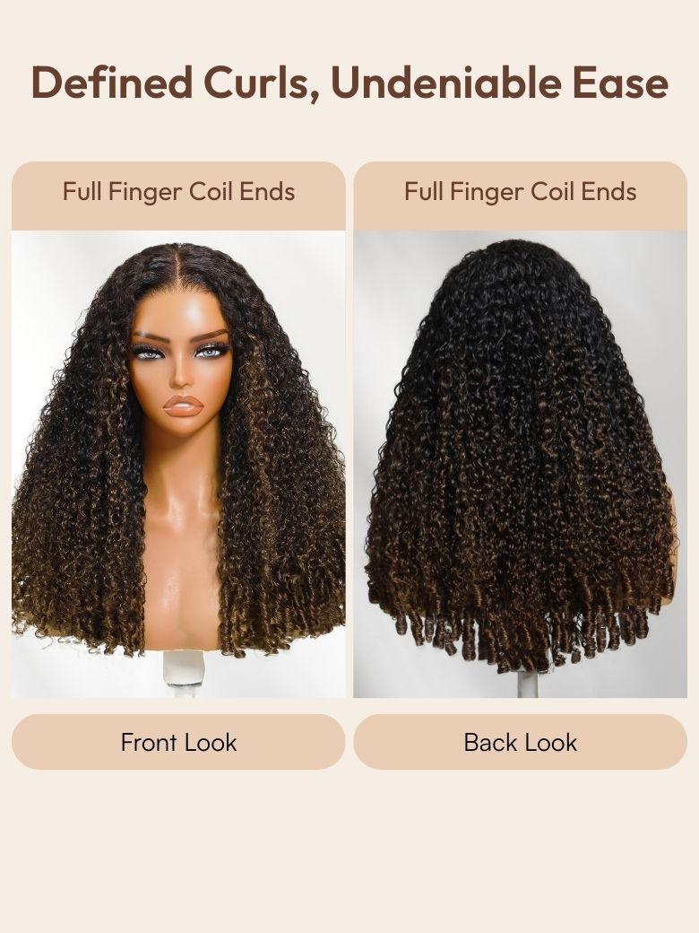 UNice Glueless Curly Wig With Defined Finger Coil Ends Black to Chestnut Brown Ombre Bye-Bye Knots™ 7x5 Lace Drawstring Wig