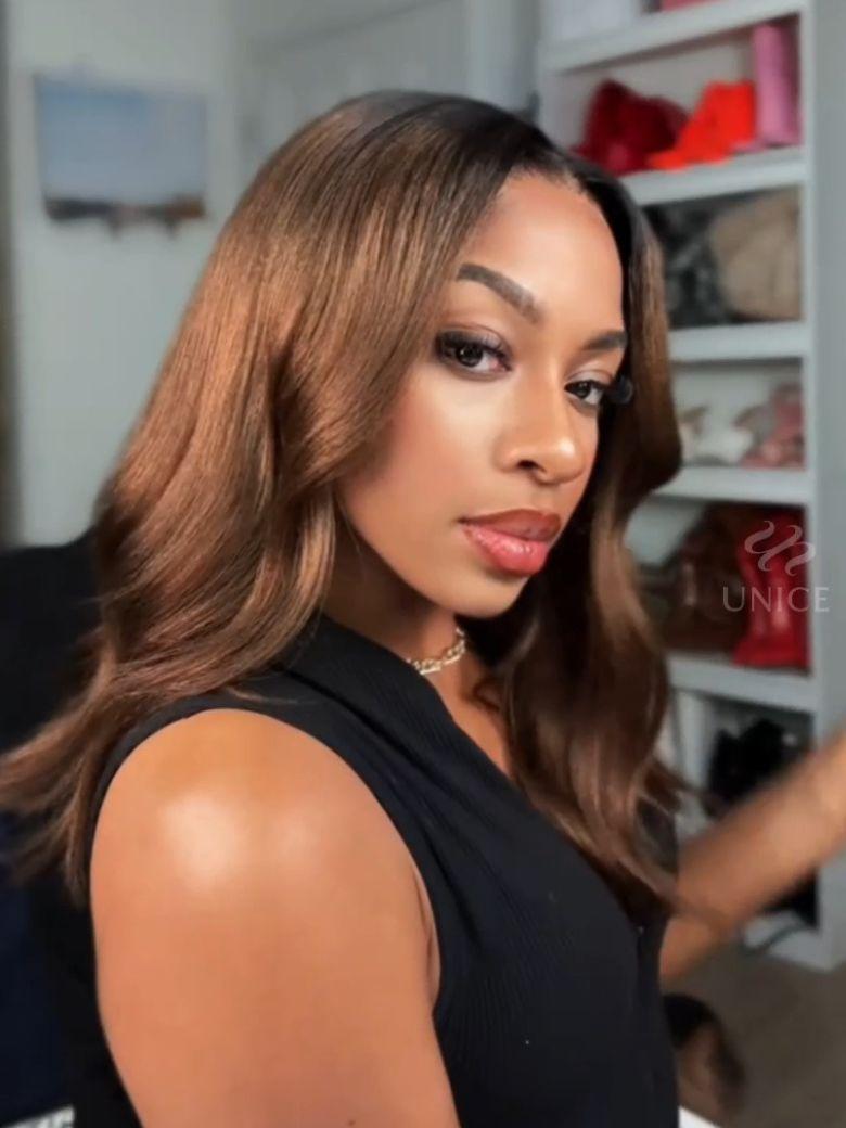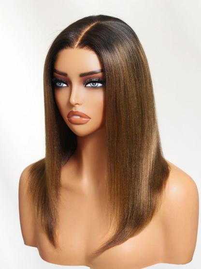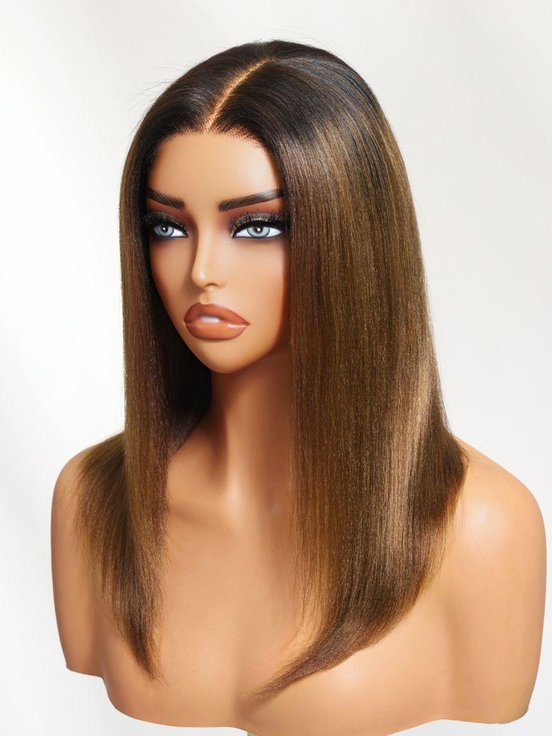Unice Bye-Bye Knots 7x5 Lace Black to Chestnut Brown Ombre Yaki Bob Wig