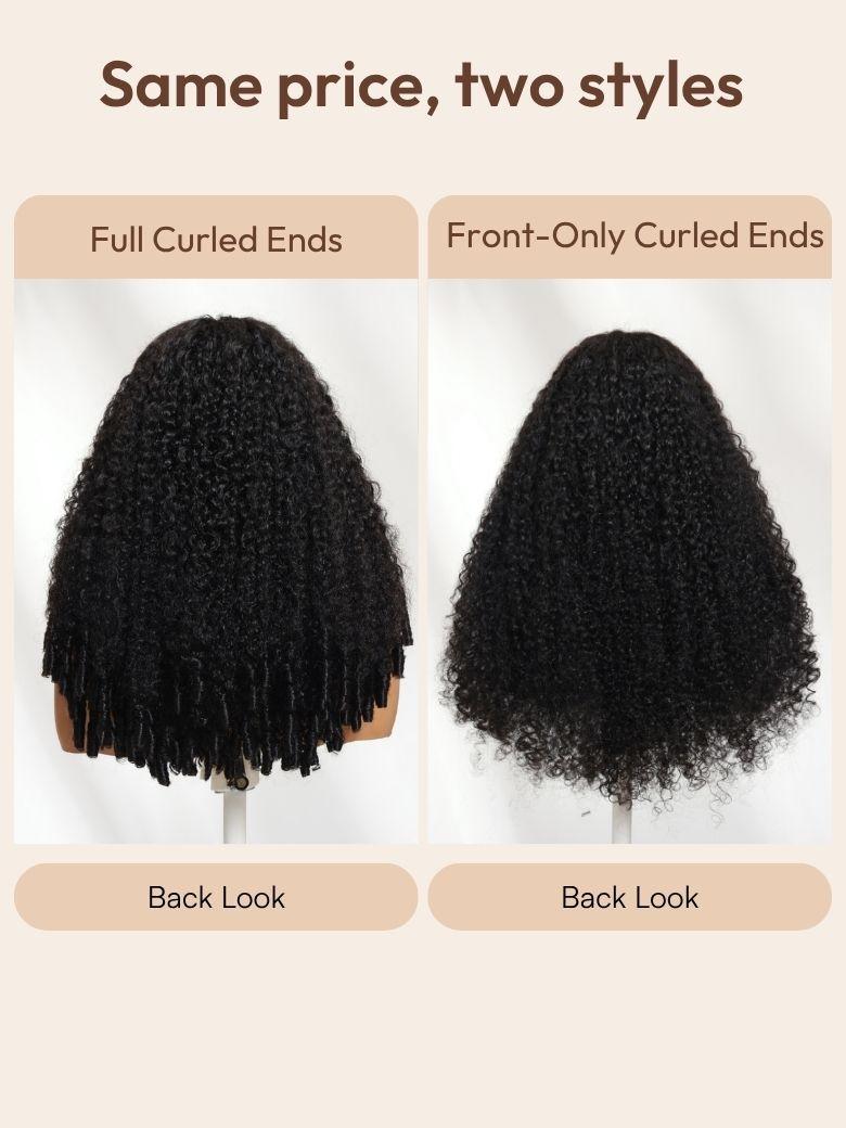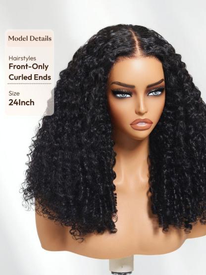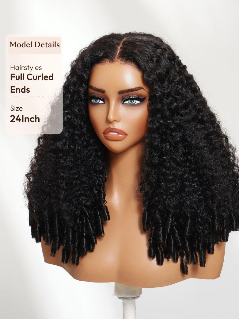 UNice Mixed Texture Bye-Bye Knots™ 7x5 Lace Natural Black Jerry Curly Wig with Defined Finger Coil Ends