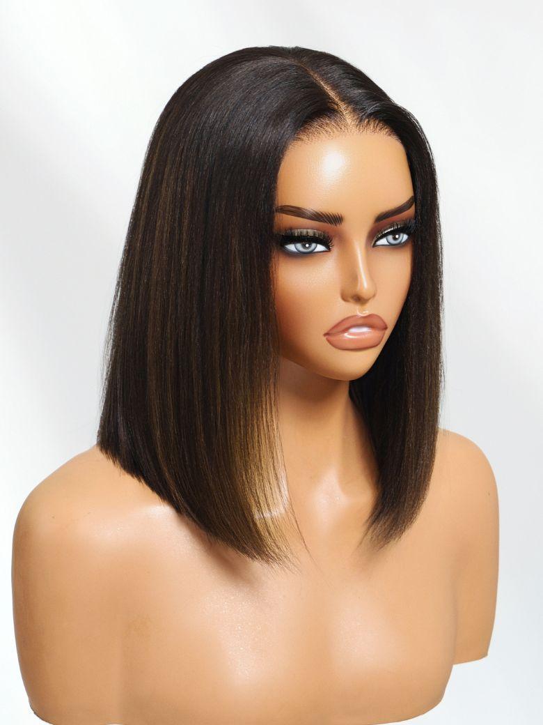 UNice Bye-Bye Knots™ 7x5 Pre-cut Lace Natural Black with Caramel Brown Highlight Yaki Straight Bob Wig