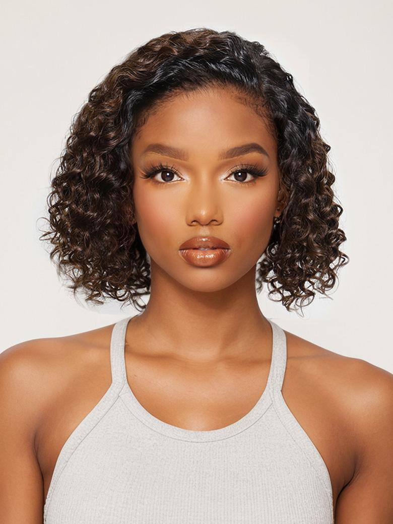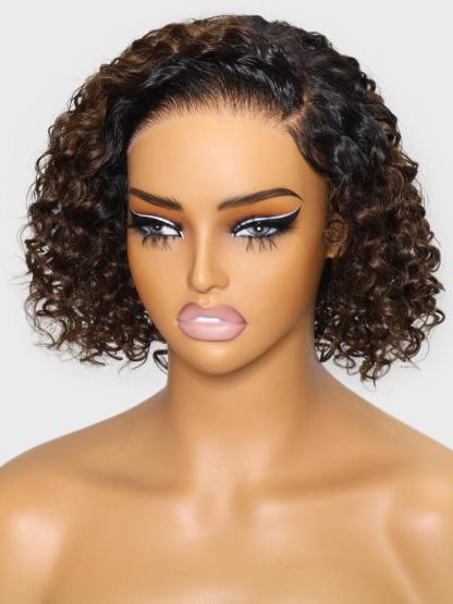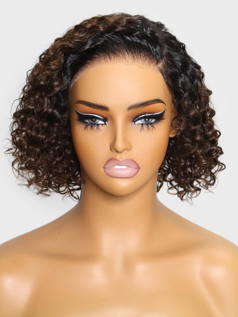 UNice Bye-Bye Knots Lace Frontal Side Part Wig Chestnut Brown Ombre Short Curly Bob Wig