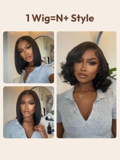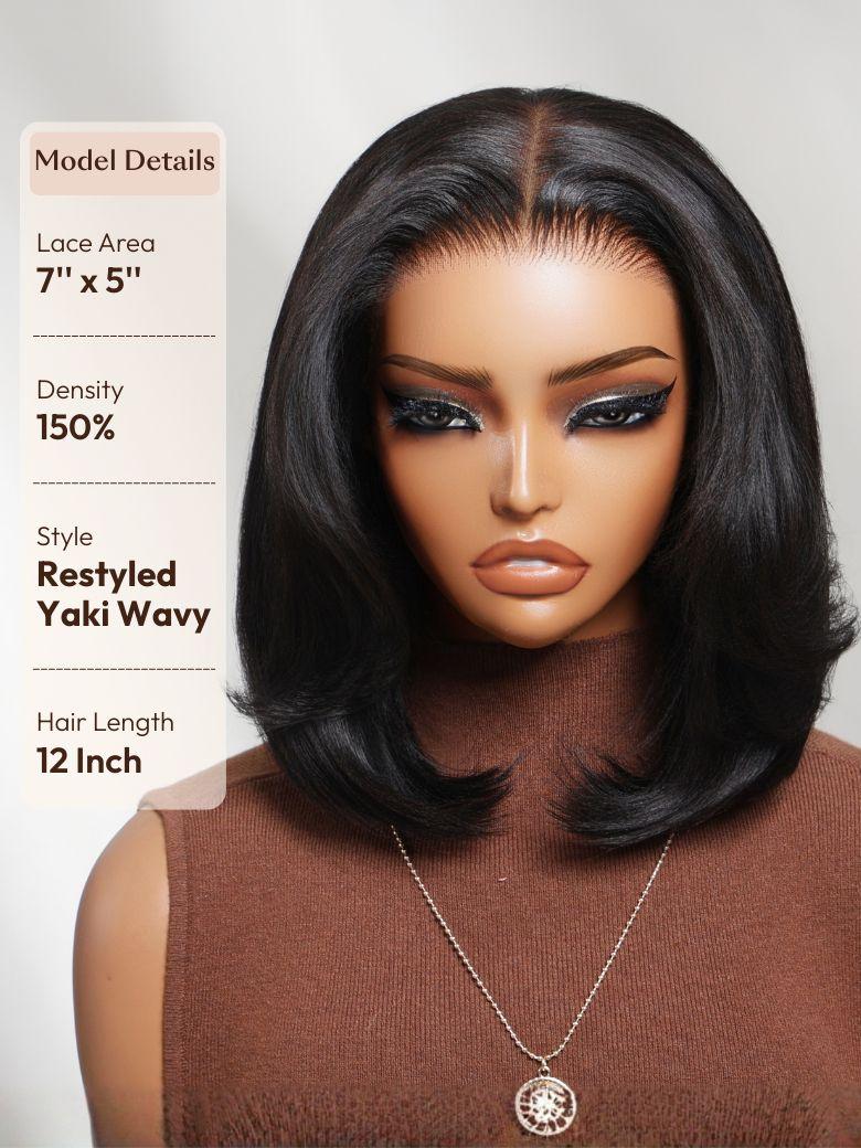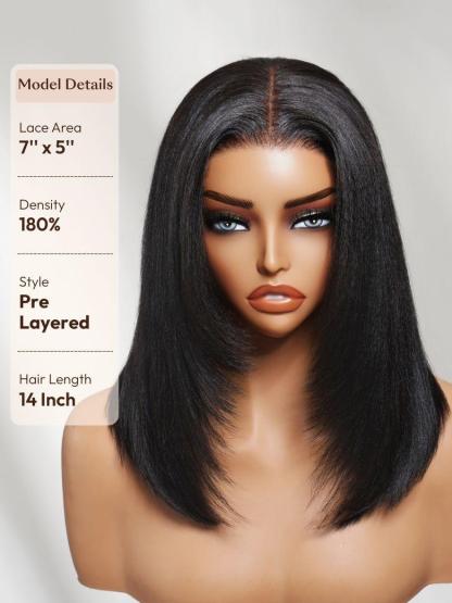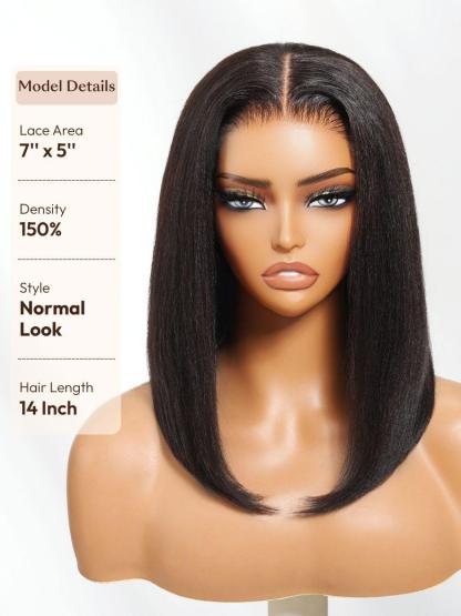 UNice 7x5 Bye Bye Knots™ Glueless Lace Black Yaki & Pre Layered Bob Bleached Knots Drawstring Wig