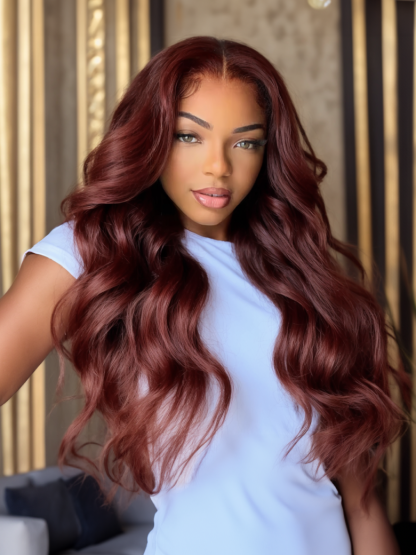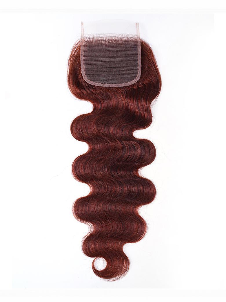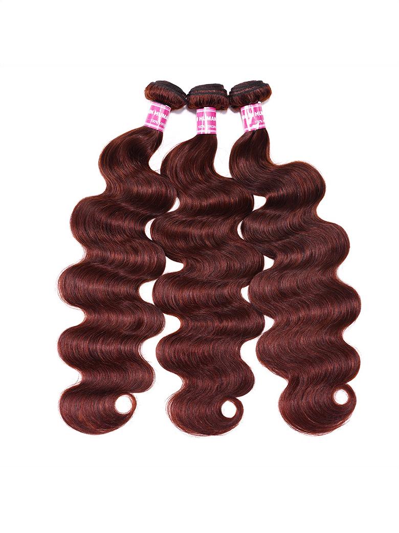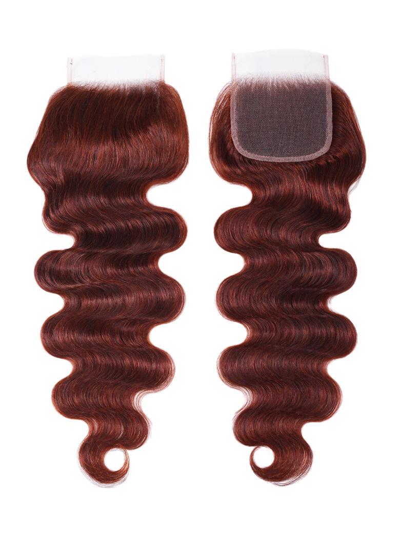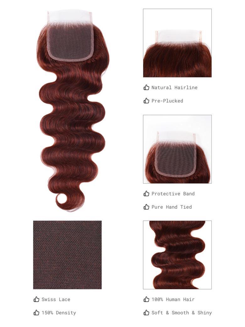 UNice Dark Auburn Body Wave Remy Human Hair 3 Bundles With Closure Deal