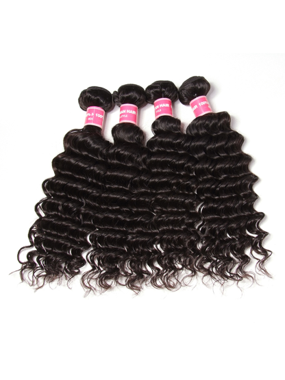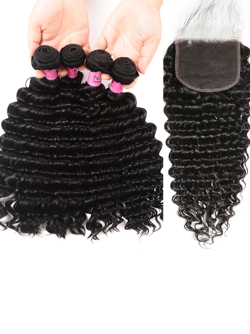 Unice Deep Wave 4 Bundles with 5x5 Free Part HD Lace Closure Natural Black