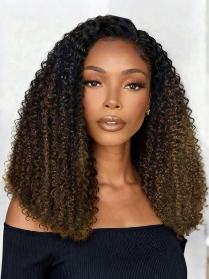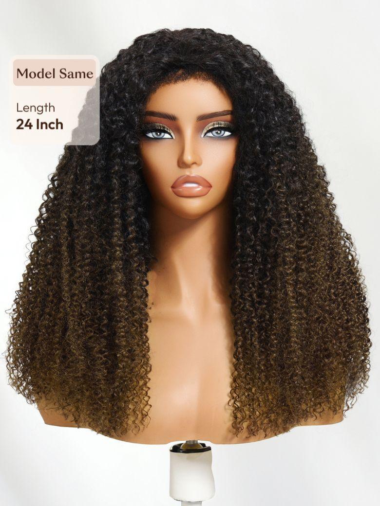 UNice Flip Over Half Wig Black to Chestnut Brown Ombre Kinky Curly Wig