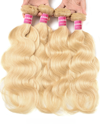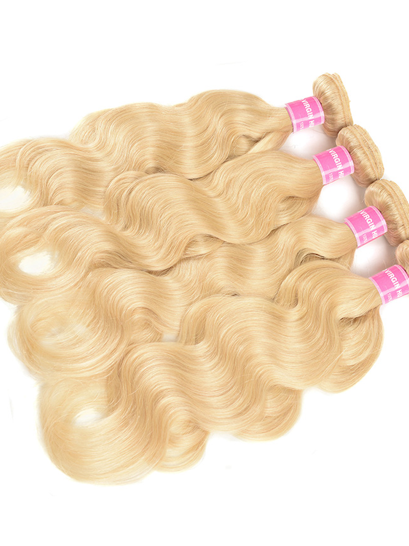 UNice Hair 100% Virgin Hair 4 Bundles 613 Blonde Body Wave Hair With Lace Frontal