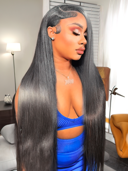[26"-40"] 180% Density HD Lace 5x5 Closure Skin Melt Perfect Hairline Glueless Straight Wig with Bleached Knots