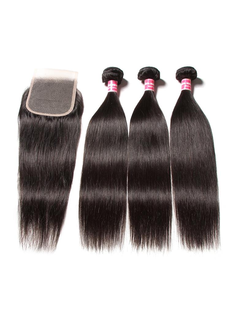 UNice 5x5 HD Invisible Lace Closure With 3Pcs Straight Human Hair Bundles