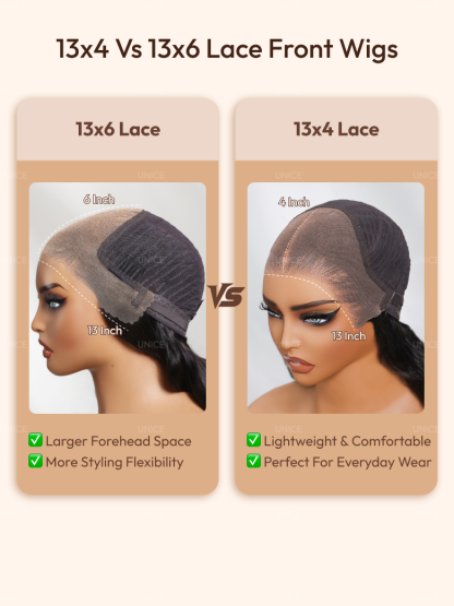 UNice 13x6 Invisible Lace & 13x4 Pre-Everything™ Lace Frontal Body Wave Black Wig With Invisi Drawstring