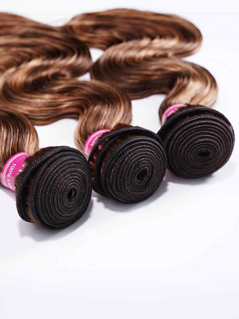 UNice Honey Blonde Piano Highlighted Body Wave 3Pcs Bundles With Closure Deal
