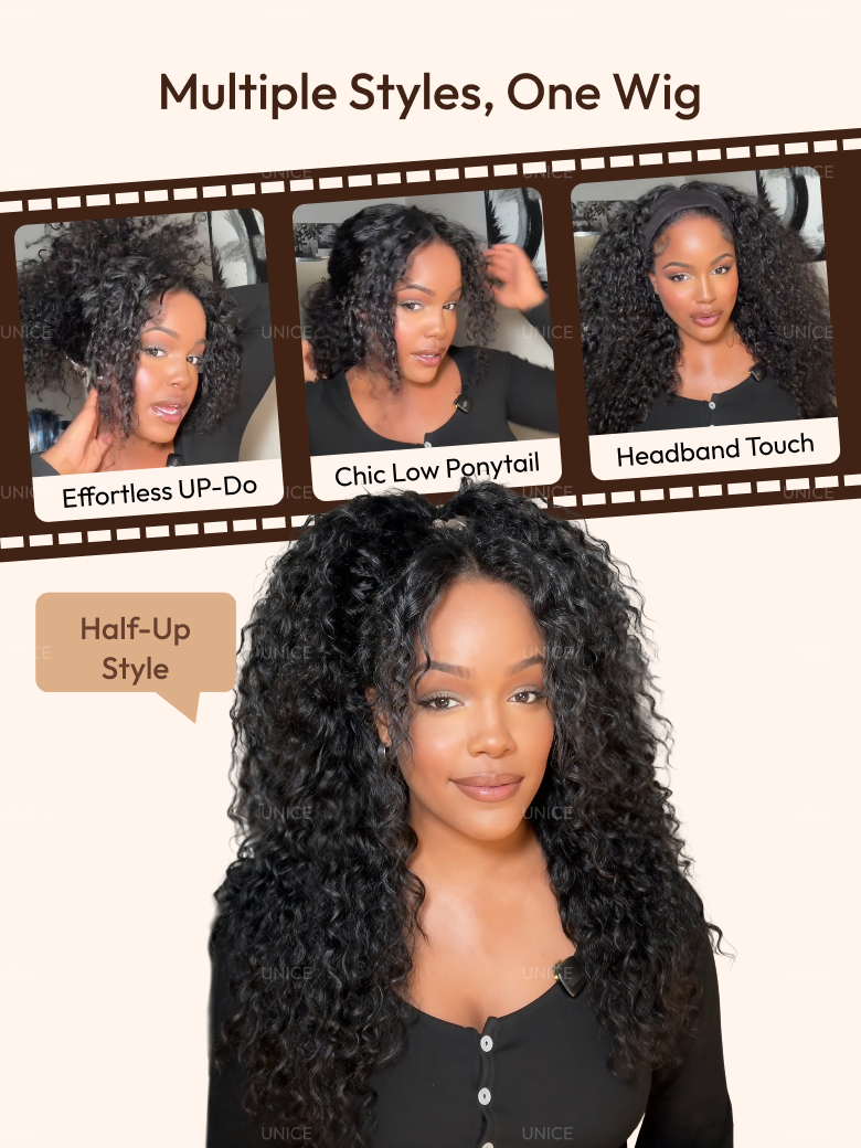 [Price Drop] UNice InvisiBlend™ V Part Bouncy Water Wave Curly Seamless Blending Wig With Drawstring 150% Density Protect Your Natural Hair