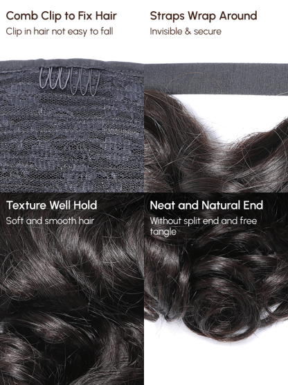 UNice Machine-Made Natural Black Loose Wave Clip-In Ponytail Extension