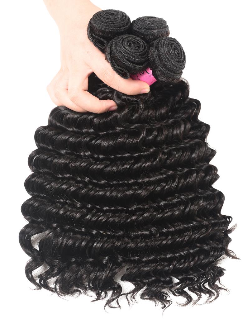 UNice Hair Bundles 4 Pcs/pack Peruvian Deep Wave Virgin Human Hair