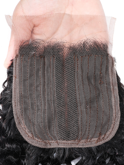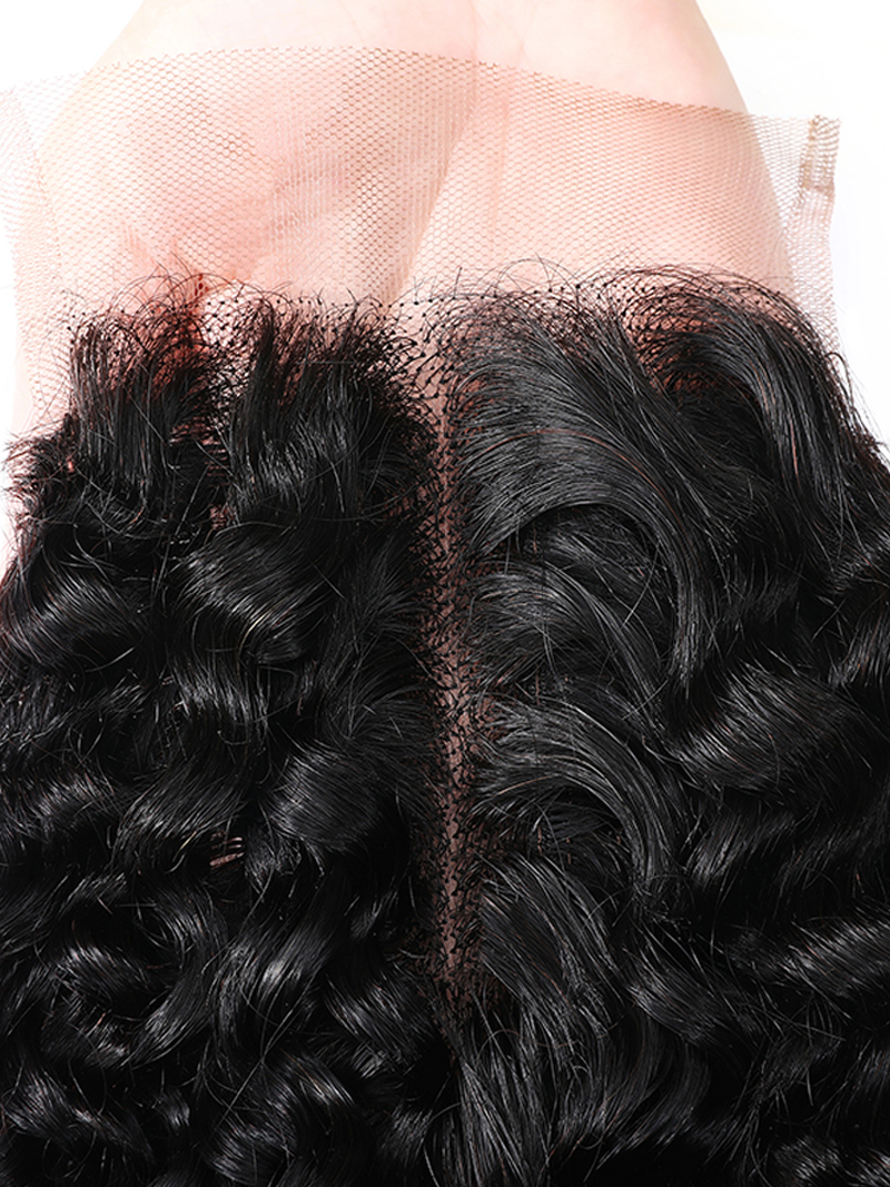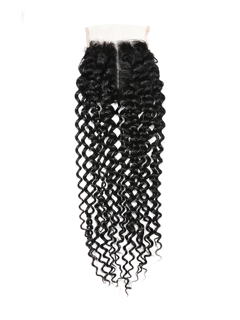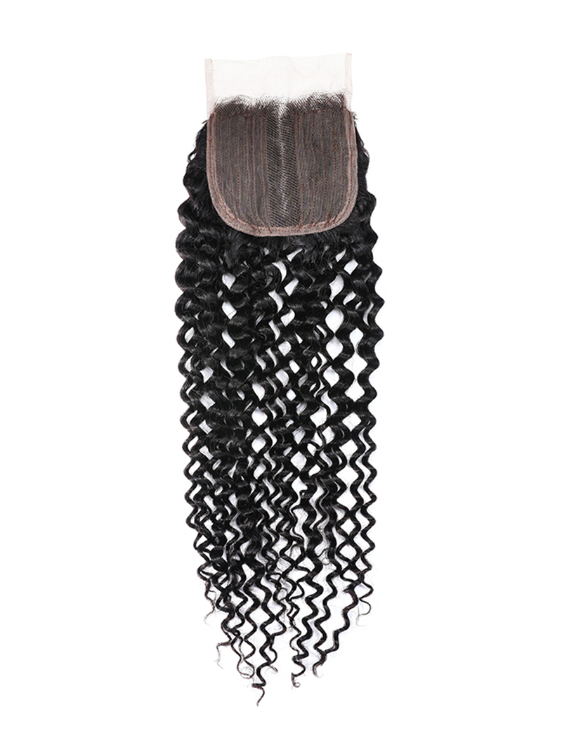 UNice Virgin Human Hair Upgrade Lace Closure Jerry Curly 4x0.75" Middle Part Top Lace Closure Natural Black Color